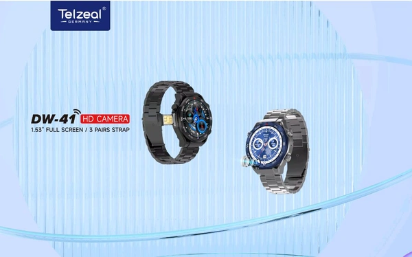 Telzeal DW-41 4G Smart Watch | HD Camera | SIM Support | 1.53β Full Touch Display | 3 Strap Combo